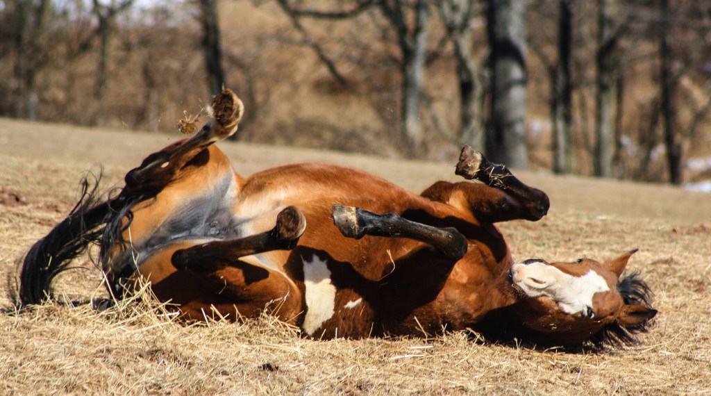 Jasmine enjoys a good roll after some grooming.